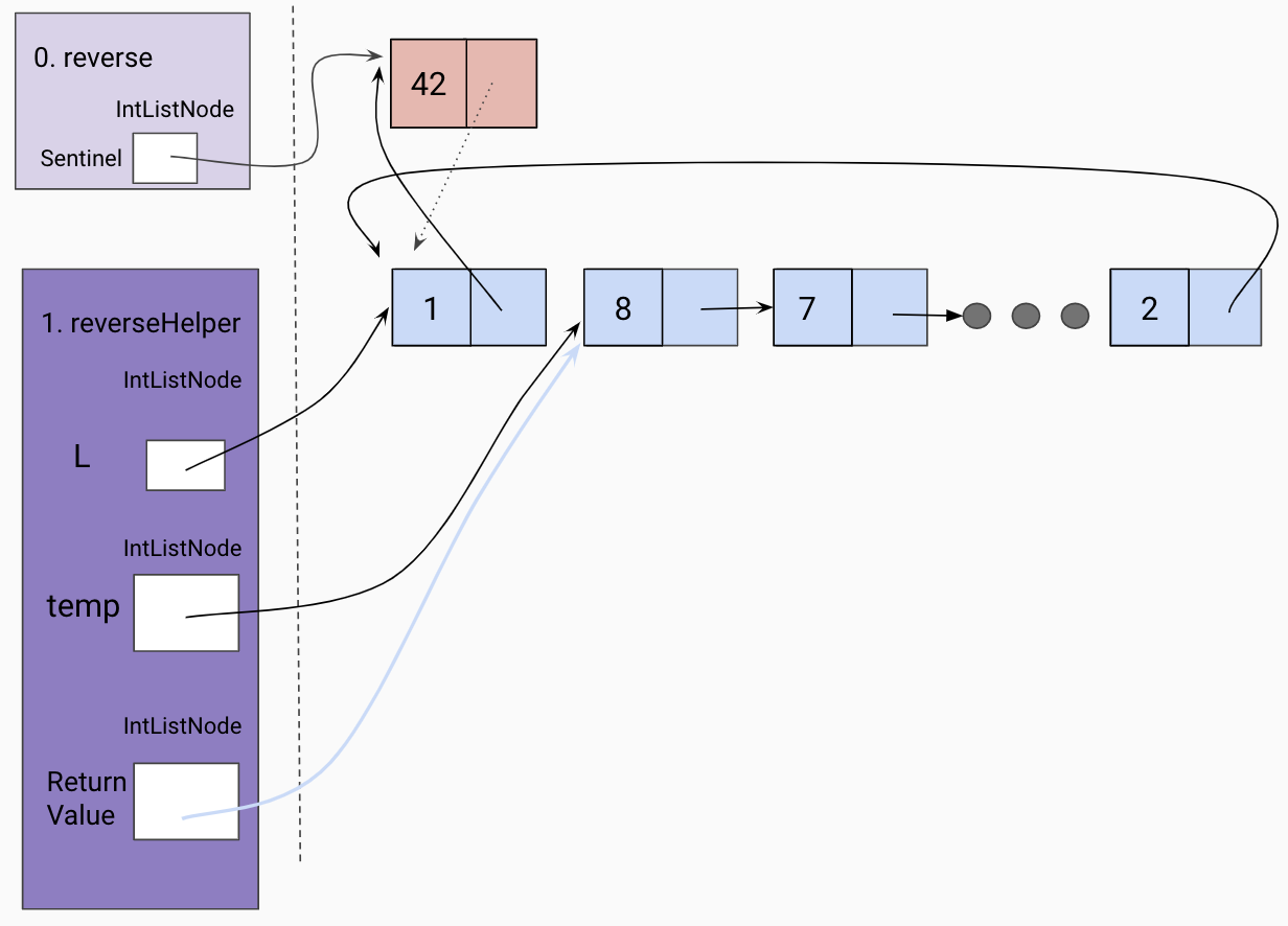 value of our recursive call, which should have reversed the current frame’s L tail.