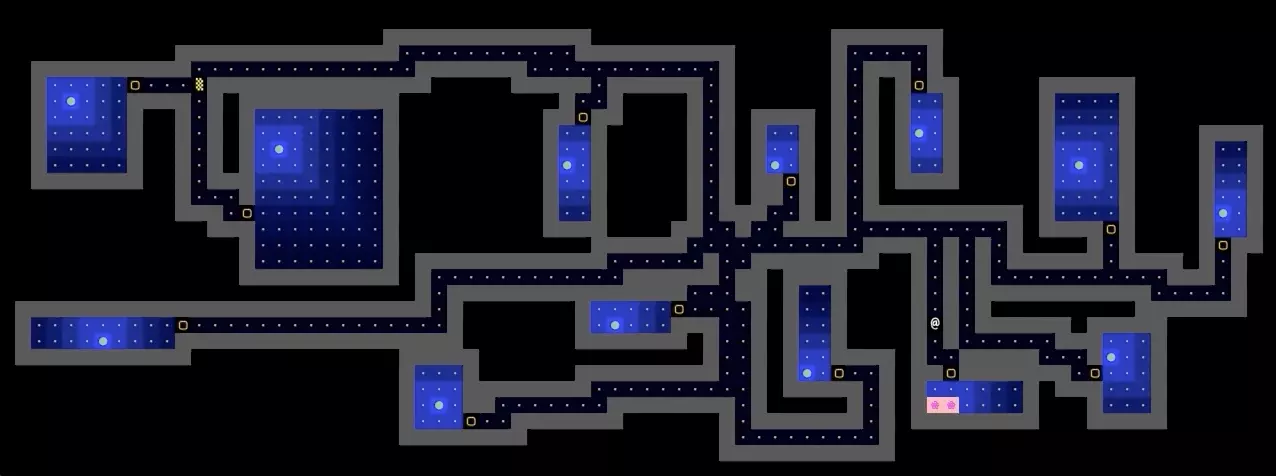 Warp: Make your world “wrap” around the border of the rendered world, where the player should be able to enter from one side of the screen and exit from the opposite side interchangeably. In order to wrap, you must have rooms on the edge of the world that clip off such that the opposite side also has a room that is clipped off, allowing the player to continue traveling on the floor tiles. The world should still follow the World Requirements from Part A excluding requirement #10.